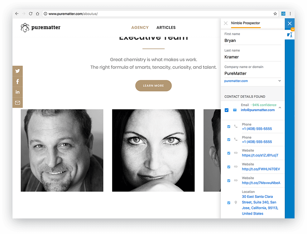 Sales teams can use Nimble literally anywhere—inside their email inbox, on social media, on websites, or inside cloud applications.