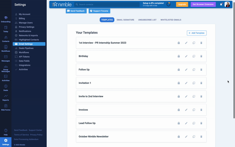 That’s where Nimble’s Email Templates step in. This feature is designed to make your life easier in the world of email. Pre-saved templates can help you save time, ensure consistency, and ultimately enhance your ability to communicate effectively.