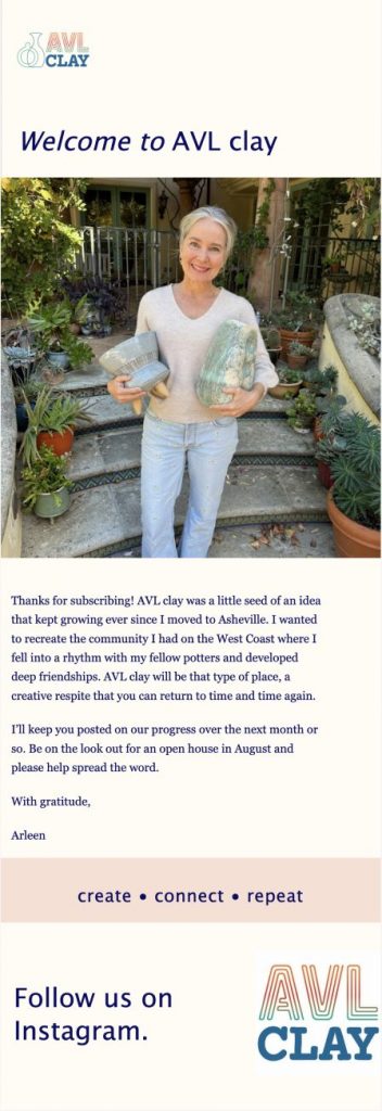 - She uses Nimble’s built-in email tools to share updates, promote workshops, and announce upcoming studio activities — all included in her plan.
