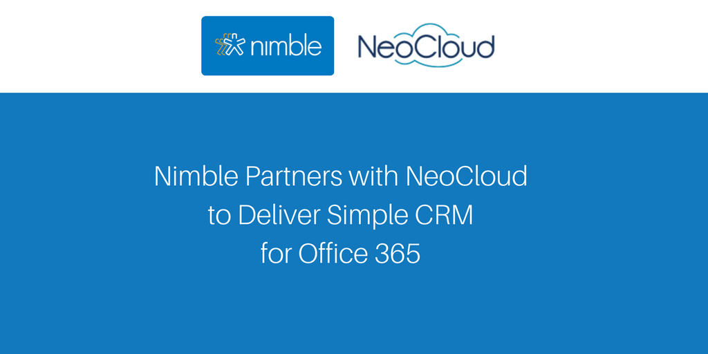 We are very excited to announce that Nimble has partnered with NeoCloud, a leading Microsoft managed cloud services provider to deliver a simple smart social sales and marketing CRM for Office 365 customers. Beginning this month, NeoCloud will bundle Nimble into all of its Office 365 deployments, enabling fast-growing small and medium customers as well as workgroups in larger organizations to access social business insights on any contact in Office 365 everywhere they work.