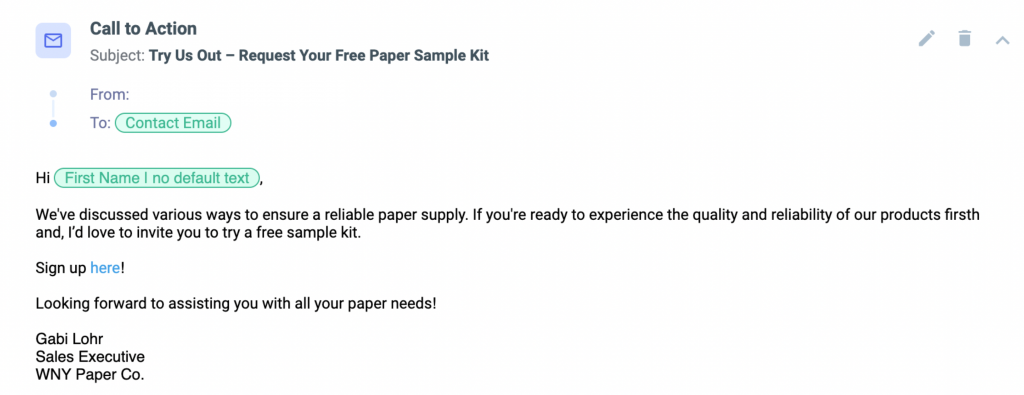 This shift away from administrative tasks enhances productivity and enables sales teams to spend more time engaging with clients and closing deals. Furthermore, each email that is automatically sent via a sequence can be completely personalized using Nimble’s Merge Tags!