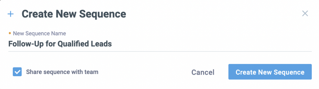 - Create Your Sequence: Go to the Sequences tab, click New Sequence, name it, select a color, and decide if you want to share it with your team.