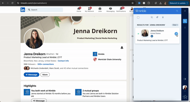 This streamlined approach begins with Nimble’s ability to enhance lead generation by automatically capturing and enriching leads from LinkedIn via Nimble’s free browser extension, Nimble Prospector.