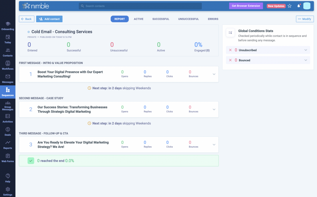 Nimble’s Message Sequences are meticulously designed to tackle these common challenges, enabling your business to amplify your outreach and drive sales more effectively.