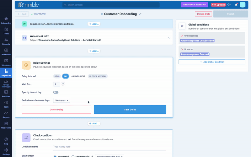 Here’s how to quickly set up a message sequence in Nimble: