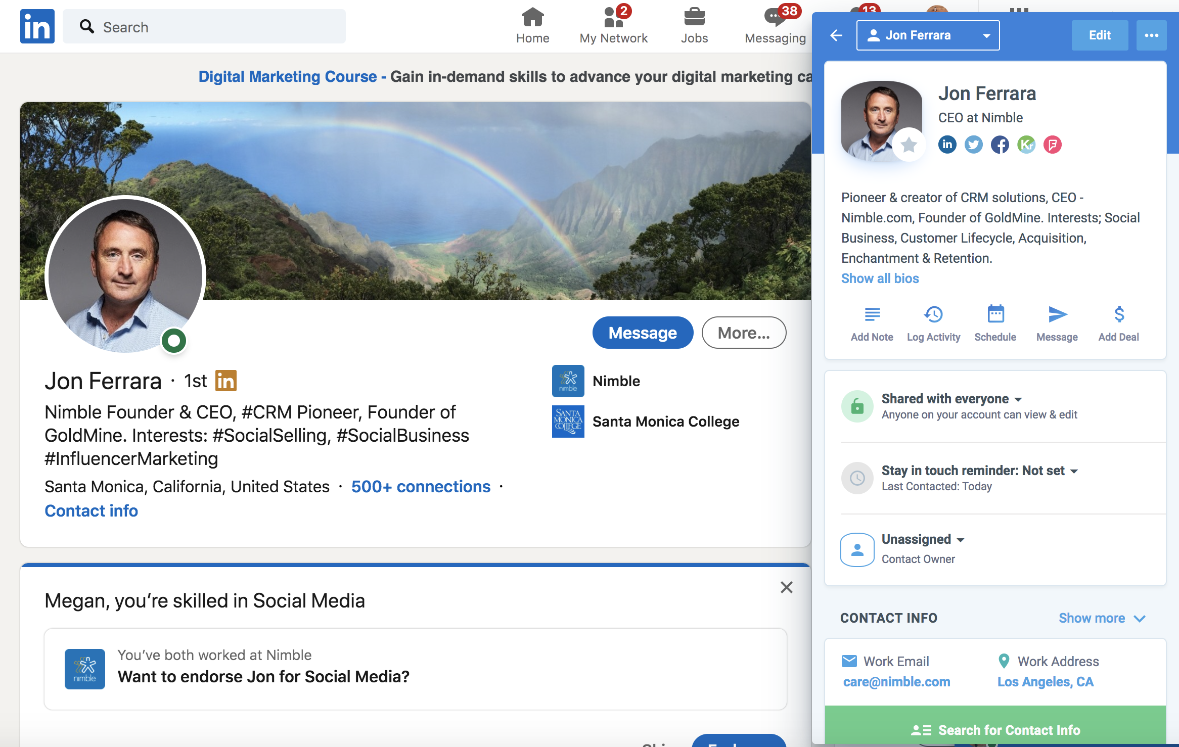 Nimble is a contact relationship management platform that unifies engagement history, contact data, team activities, and more into one shareable platform that everyone on your team can access from everywhere on the web.